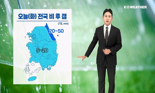 오늘(7일·화) 전국에 비가 내린 후 개겠다.
