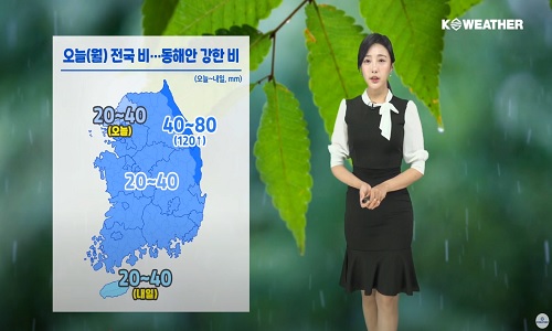 * 예상강수량(13~14일)- 강원영동, 경북북부동해안 : 40~80mm(많은 곳 120mm이상)- 서울, 인천, 경기남부, 경기북부(13일), 강원영서, 충청도, 전라도, 경상도(경북북부동해안제외), 제주도(14일) : 20~40mm