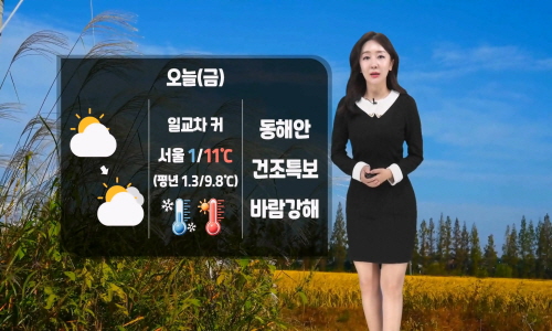 금요일인 오늘(21일·금) 낮 동안 온화하겠고, 일교차가 크겠다. 한편, 동해안은 대기가 건조한 가운데 강한 바람이 불겠다.